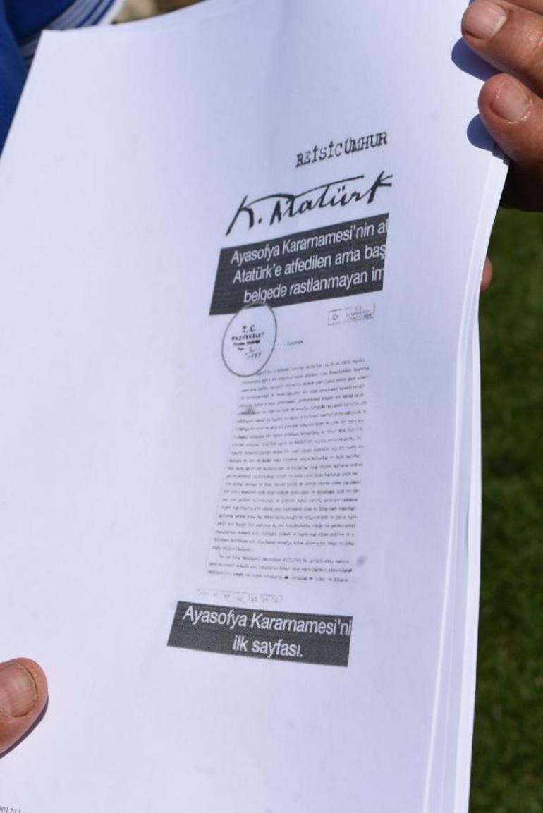 Ayasofya'nın müze haline getirilmesi için hazırlanan kararnamenin sahte olduğunu ileri süren Prof. Dr. Halaçoğlu, "Burada kullanılan imza gerçek değil. Bir el bunu müze haline getirmiş ve Atatürk'e mal etmişler. O tarih için Atatürk ismi geçince kimse itiraz edemez diye düşünmüşler. Böyle bir sahtekarlık var işin içinde. İki-üç gün sonraki kararnamelerde yuvarlak 'A' harfi ile atılmış Atatürk imzaları bulunuyor. Buradaki ise köşeli 'A' ile atılmış. Bunun benzeri yok ve başka hiçbir yerde bu imza yok. Böyle imza olmaz. Bunun mürekkep tahlilinin yapılması gerekiyor. Atatürk, Ayasofya'nın iç kesimlerinin ibadetten çıkarılmasını kabul etmiyordu” dedi.